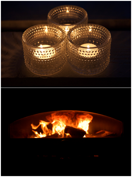 Ja toivotaan, että kamiinan saa tuolla tavalla vinoon, vähän niin kuin vihjeeksi se V:n kanssa tuohon jätettiin.